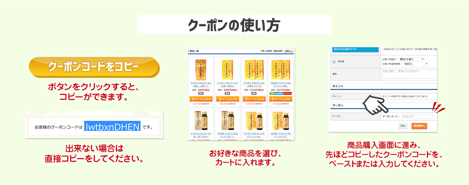 - ・クーポン特典は、ポイント利用額分を引いた請求金額3,000円以上のご注文が対象です。