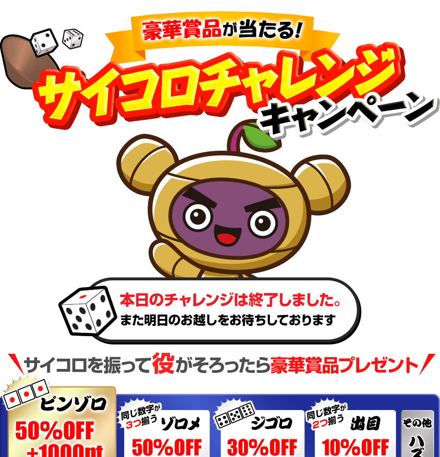 - ・お一人様1日3回までチャレンジできます。