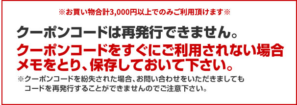 - 獲得したクーポンはお買い物合計3,000円(税抜)以上でご利用可能です。